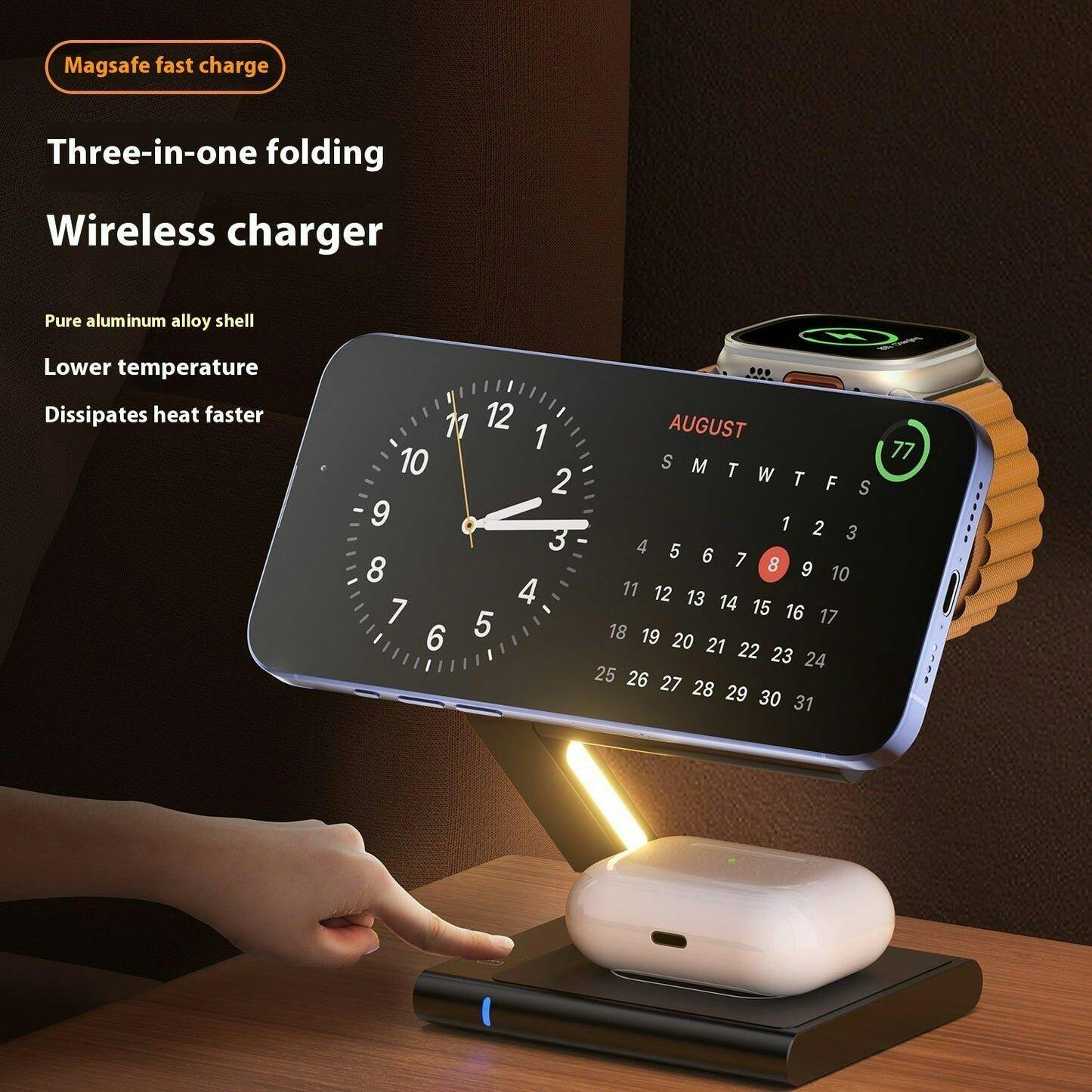 The Ultimate Nightstand Hub: Keep it on your bedside table to wake up every morning with all three of your devices at 100% battery.